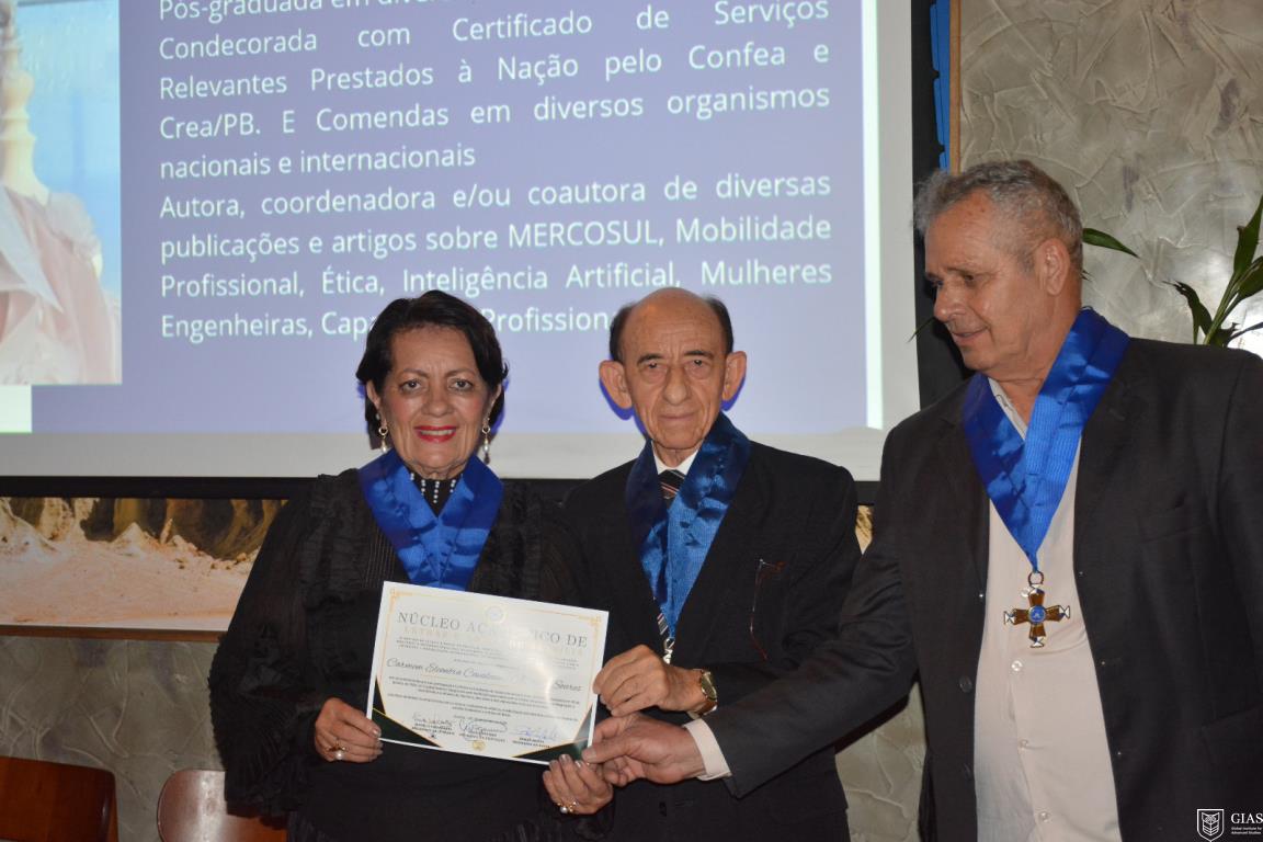 Tomaram posse como Membros Fundadores: Ana Maria P. Guimarães, Bella Sarquiz, Carla